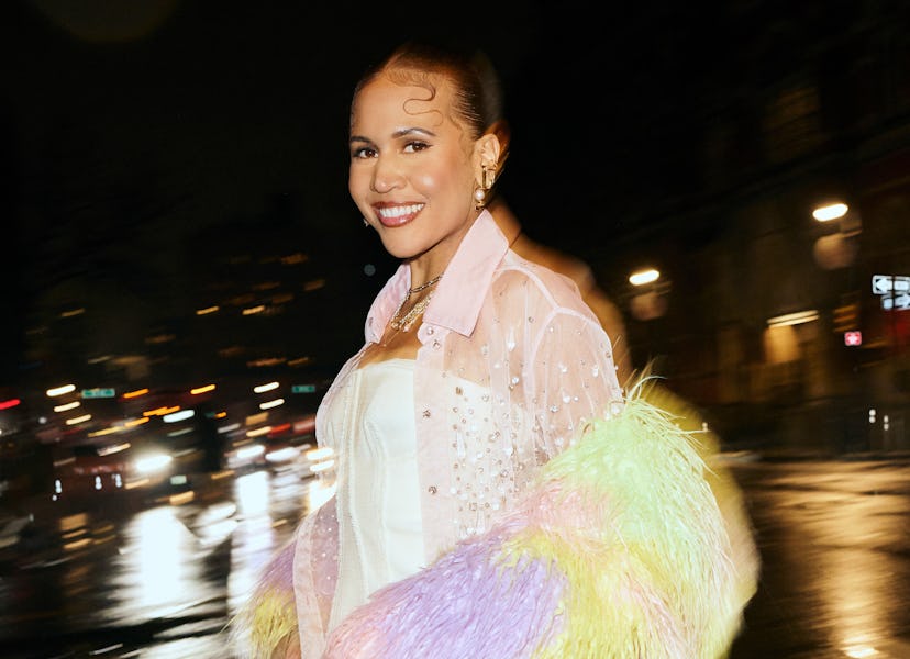 Lately, Aimee Kelly has been enjoying a slow morning, sipping matcha in her prismatic wardrobe, where creative inspiration comes alive in her famed OOTD videos. But today isn’t a typical day, and “slow” would be the last word Kelly would use to describe it. “During fashion week, nothing else exists. I don’t have a personal life,” says the LatinX content creator, who’s beloved for her maximalist style and affinity for bright pops of color — a refreshing respite in a world that currently seems to be obsessed with neutrals.