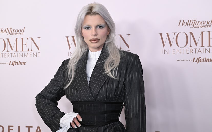 Just when you thought you knew Julia Fox’s aesthetic, she surprises everyone with a new reveal. Fox arrived at the New York premiere for Presence with a white-blonde pixie, bleached brows, and nude lips for an vampire-at-a-rave effect.