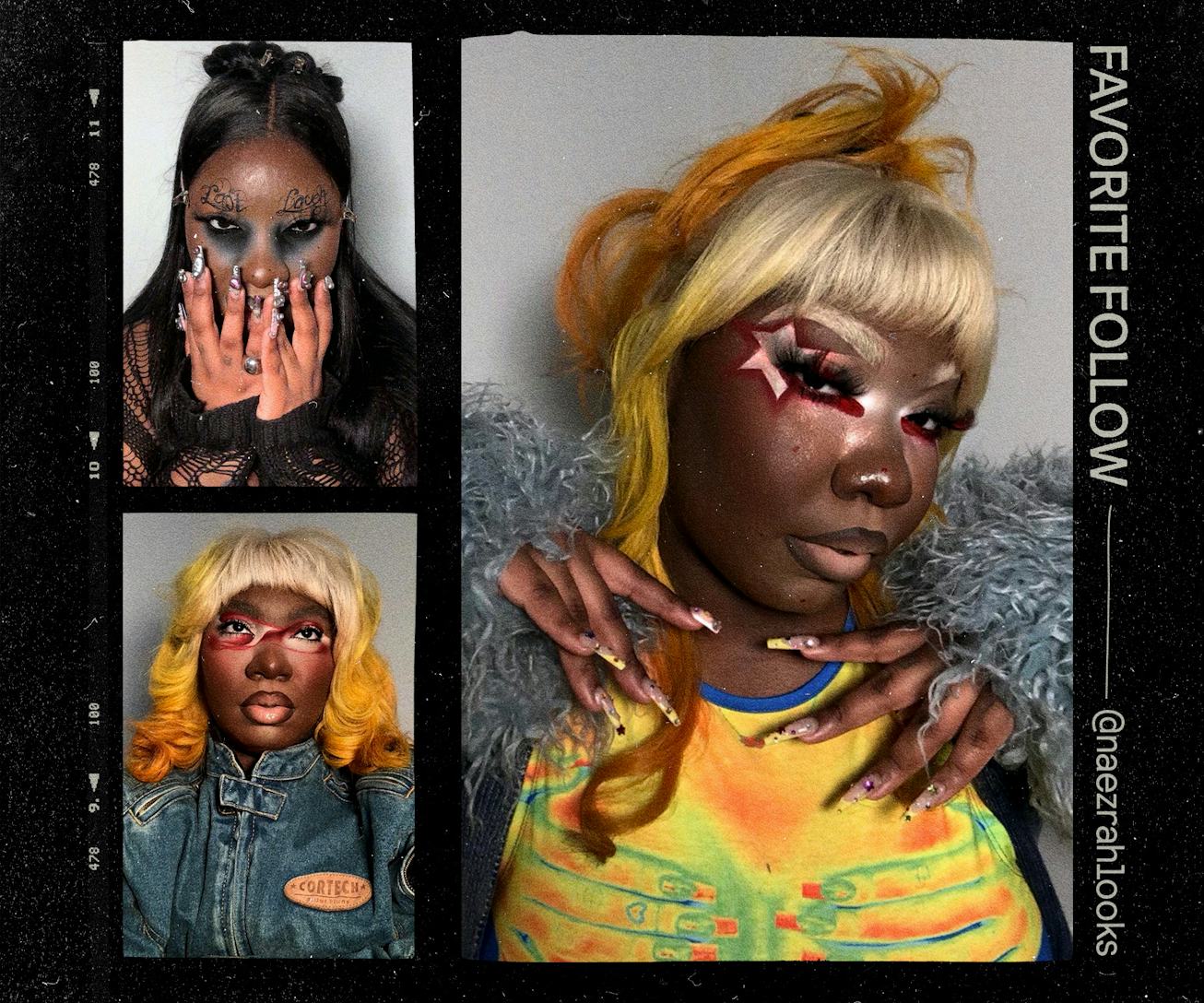 Another reward of staying true to her artistic vision? Getting recognized by SZA—even getting direct messaged out of the blue to work with the singer. “SZA sent a picture of a star look I did on myself, asking if I could recreate it on her,” Naezrah recalls. Now, Naezrah tells NYLON that her mantra is, “Do nothing without intention.” Her drive, first and foremost is to champion Black creatives and contribute to their visibility who are often overlooked in the editorial space. With her growing presence in beauty and fashion, we can only imagine sky’s the limit.