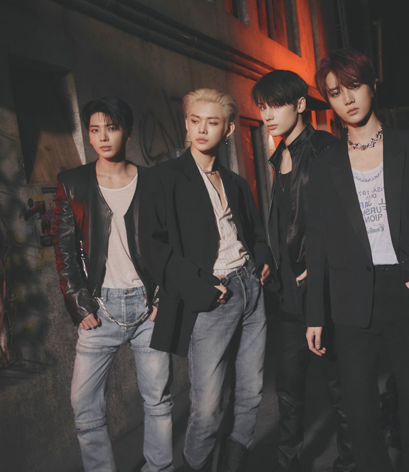 "This is actually our first time trying a darker, more mature concept, and we want to tell people that Tomorrow X Together can even pull off these themes," Taehyun says. Even so, this doesn't feel like a seismic change for a group whose entire concept is "growing up." Of course their naive love would sour, leading them to this angsty next phase. However, the bad boy bravado didn't come naturally for everyone. "I'm a good boy, so I can't really relate to the emotions of a bad boy," youngest member Hueningkai jokes. Beside him, Yeonjun, the oldest, laughs and Taehyun adds a wry "same." So TXT are just really good at acting bad? "Yes, exactly," Hueningkai confirms with a nod.