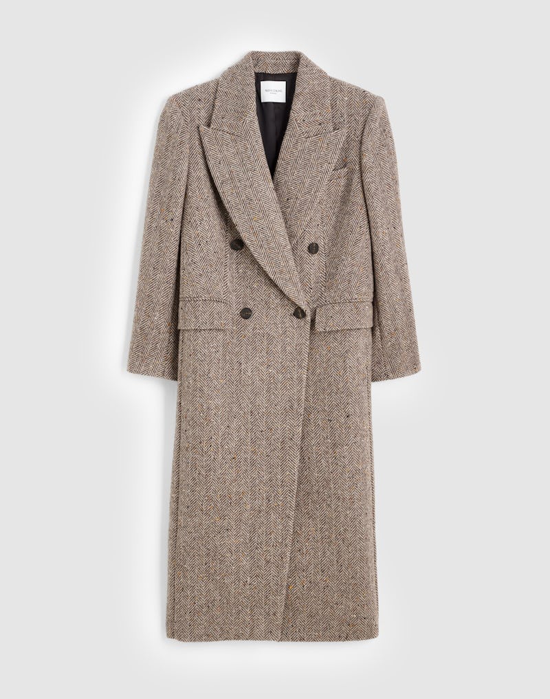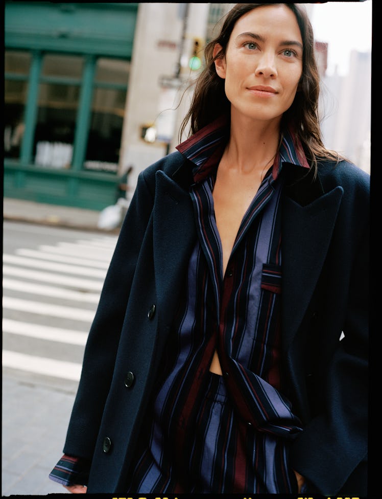 It's in proportion, because at the end of the day, a coat is a classic item that could be from anywhere. I'm interested in more menswear shapes. We've made a couple in this collection like an amazing navy blue one, which truly is my dream coat. That one was almost Teddy-boy inspired. It's got a ‘50s thing to it. What I love about that coat is that it performs its function. I've got a specialist interest in practical outerwear as a Brit. I need coats to actually be warm. Our tweed was a favorite of everyone in our style-outs. It's got the length to it and yeah, maybe that's more ‘70s or early ‘80s. I can definitely imagine Richard Gere having that as an overcoat as well. It's only occurred to me that my references are a bit weird. I've often borrowed from the boys, but I didn't realize that was quite so specific to me.