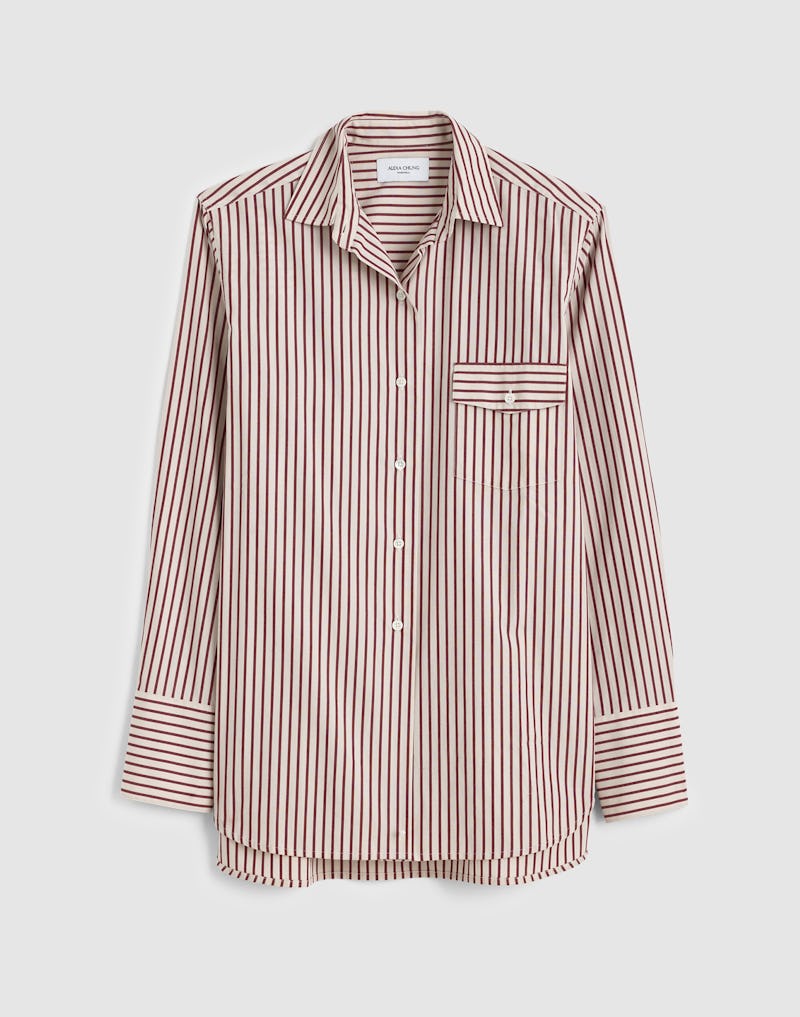 It's the striped pajamas, and then the navy-blue coat over the top of it. I personally love the ‘just nipped out to grab something’ look.