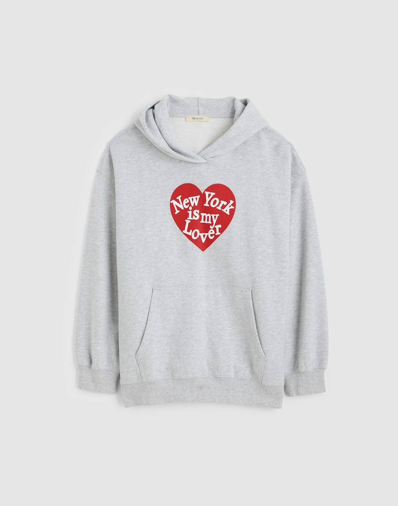 Indeed, her quirky British sensibilities come through in the classic straight-leg jean, Teddy-boy coat, and preppy stripes, which find their American match in the boxy, ‘80s power-suit-inspired men’s coat and striped Upper-East-Side-friendly pajamas. For every flouncy silk slip dress, there is a rigid, downtown-influenced piece to counter it, like a leather wrap skirt with silver hardware. Her quirk brings a friendly air that many celebrity collaborations would’ve sanded over; her “We’re Witches Bitches” T-shirt and touristy-yet-cute “New York Is For Lovers” hoodie show her kitschy side doesn’t come at the sacrifice of good taste (or a well-cut T-shirt). The accessories — and she is, in fact, the overlord of adornment — include a chunky gold belt, her take on a Western belt (which includes rhinestones, thank you very much), and multicolor scarves, all made to inject life into what could otherwise be a drab winter outfit of a coat and jeans.