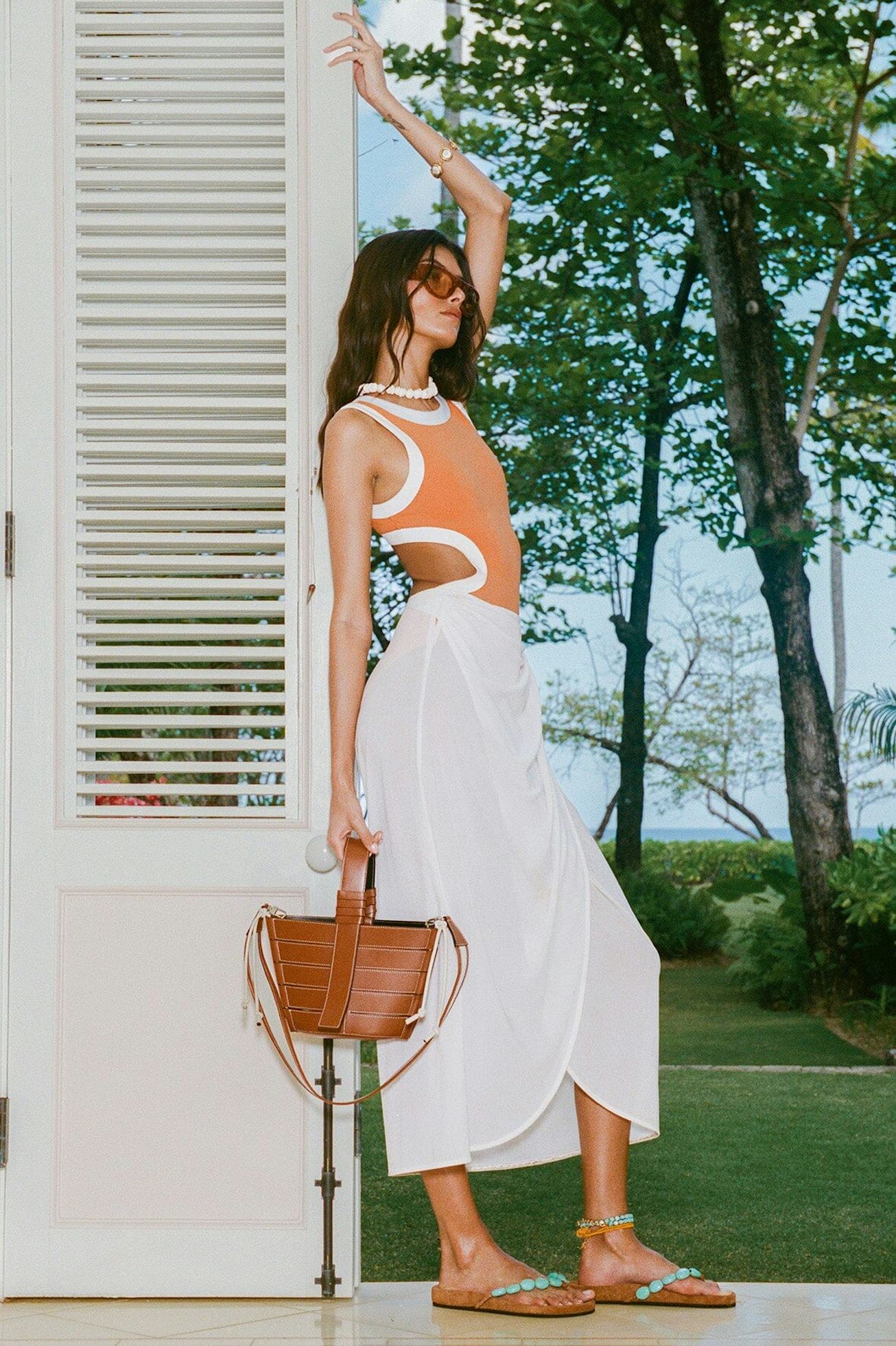 When it comes to swimwear, the one-piece suit makes a great double for a fitted bodysuit. A few styles that make for a super versatile suit are bustier-like underwires, floral appliqués, rash guard silhouettes, or classic scoop necklines, to name just a few. Pair these with flouncy maxi skirts, relaxed denim shorts, or wide-leg linen trousers to transition from the sea to the streets, fuss-free.