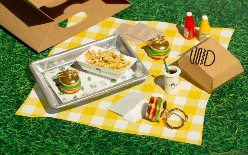 Case in point: ear piercing and jewelry brand Studs has teamed up with East Coast-beloved burger joint Shake Shack for a tasty new collaboration, which dropped September 26 and features cute and kitschy burger earrings, inspired by the fan-favorite ShackBurger, of course. The ear-resistible (sorry) new jewelry collaboration includes a Shack Burger Huggie, and a Shake Shack Earscape for fans looking to get on thrice the treats; including the Burgie Huggie, a CZ Stud, and a Smiley Stud.