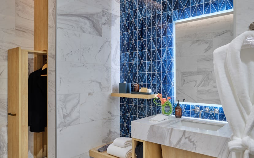 There are also eight “shower suites,” where weary travelers can freshen up amongst hammam-like marble walls and dry off with fuzzy, fresh towels, bathrobes, and slippers. The best part: There’s a hidden sliding closet where you can hang up your clothes and place your shoes. Then, an attendant on the other side will steam your clothes and shine your shoes as you shower. I repeat: an attendant will steam your clothes and shine your shoes as you shower. Afterwards, just open the sliding door, and your freshly pressed shirt and shiny shoes will be waiting for you. Beyond the lounge’s open-air atrium, beyond the restaurant and spa and massages, this was ultimately the most jaw-droppingly extra and luxurious element I learned about during the media preview.