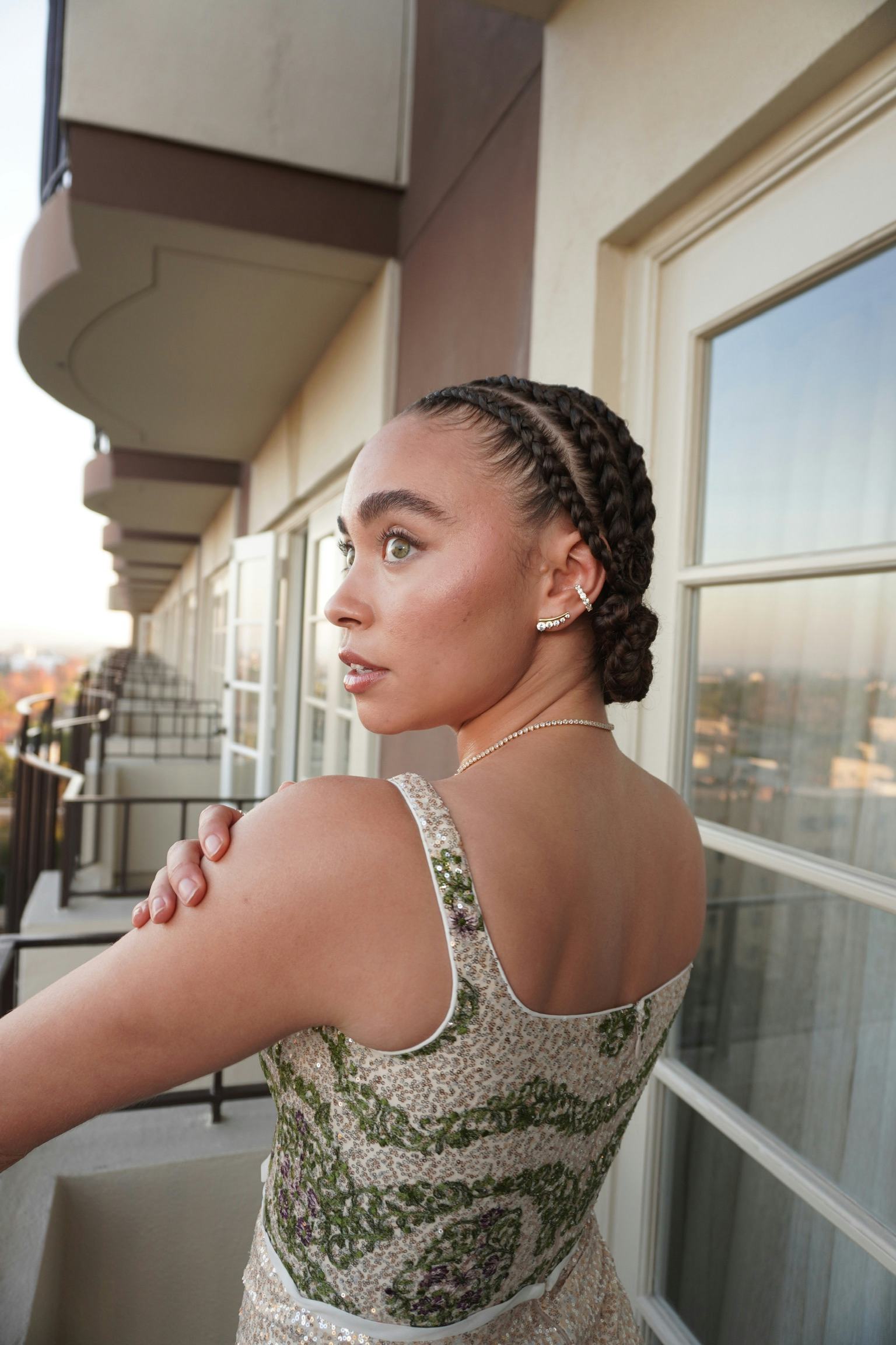 Bass’ glowing skin and piercing eyes don’t need much elevation to stand out, but her glam artists for the evening braided her hair back into a demure updo that, in Bass’ words, brought Black beauty to Old Hollywood glamour. Her Giambattista Valli gown in muted tones of tan and green also delivered on the subdued, classical energy of days past in Hollywood, yet felt fresh with a smattering of diamonds across her neck and ear. A quick bite of chocolate cake and some serious posing practice were the final touches before she hit the Dolby Theatre. Keep scrolling to see how the young star made her way to the red carpet.