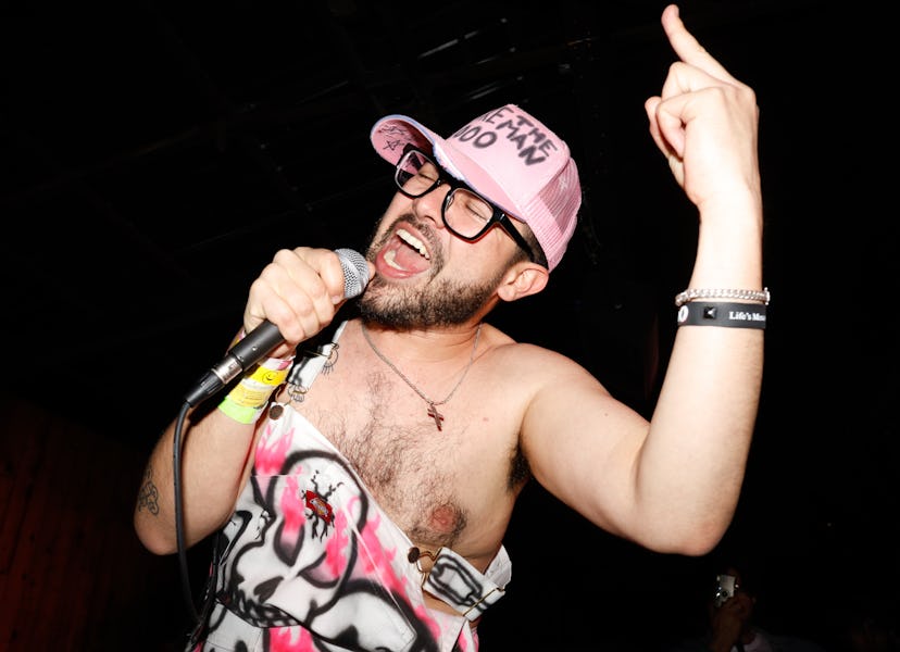 So during the pandemic, as Manhattan rent prices plummeted, Ortiz-Goldberg moved downtown with a vision for a music scene that felt “less like shows and more like parties,” he says. Music venues were closed, so Ortiz-Goldberg and friends like hyperpop duo Frost Children put together makeshift concerts in sports bars, Chinese restaurants, and art galleries. “I was like, if I can get my friends in this tiny bar, get it really packed, and wear a cool outfit, it’ll be on everyone’s Instagram story, and then everyone who’s a friend of a friend will see it and be like, ‘Damn, I should have gone to that,’” he says with a laugh. “New Yorkers have so much FOMO and they want to believe that any event they’re going to can and will only happen once.”